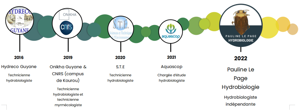 Après un parcours professionnel entre Guyane et France métropolitaine et forte d'une grande connaissance des invertébrés aquatiques, j'ai ouvert mon entreprise d'analyses hydrobiologiques en 2022.